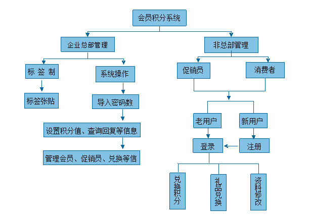 1、會員積分:消費者通過注冊會員,登錄會員,輸入積分碼獲取、累計積分。選擇、購買商品消費積分。